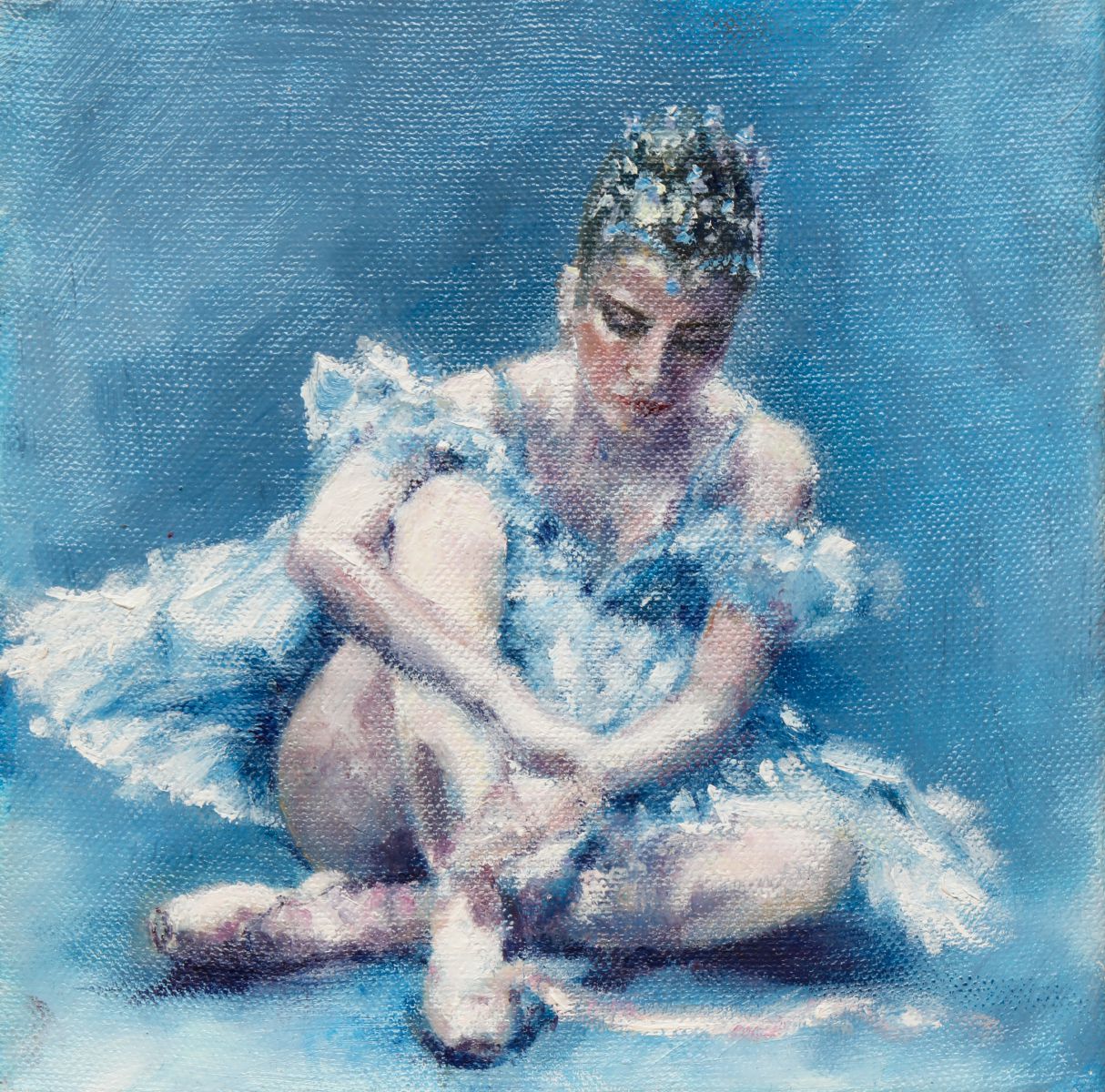 "ballerina blauw" - olie op canvas - 20 x 20 cm