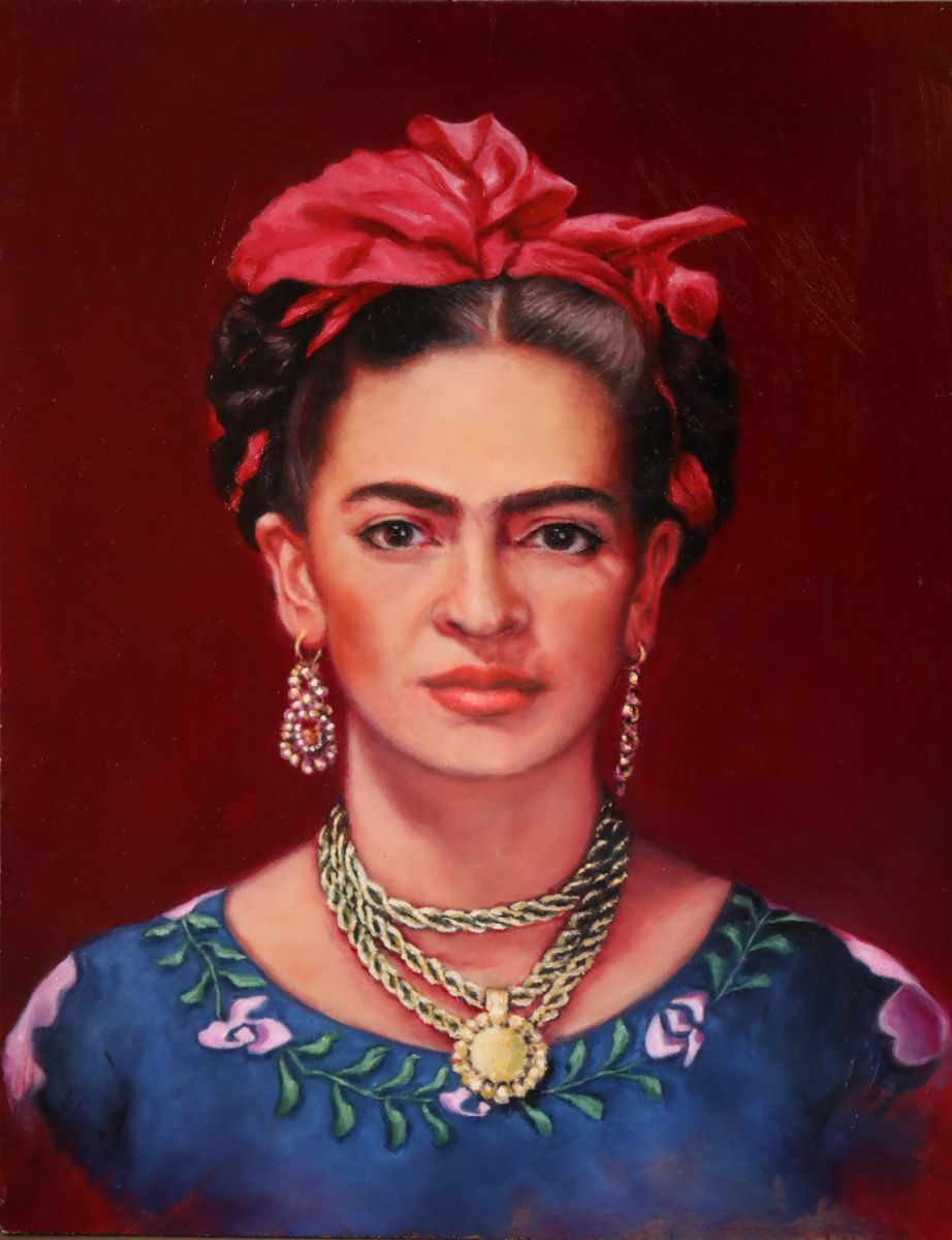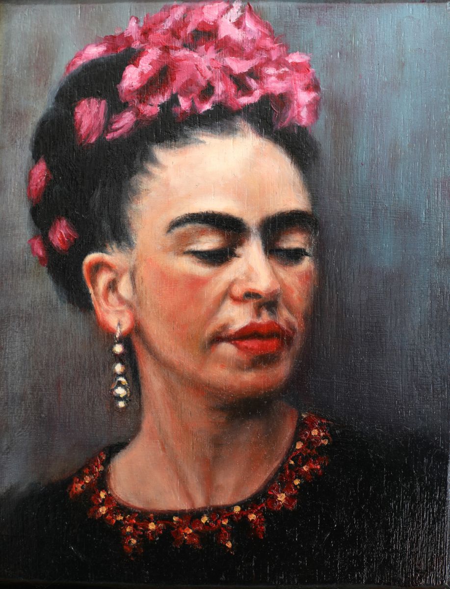 "Frida Kahlo" - olie op paneel - 45 x 40 cm (incl. lijst)