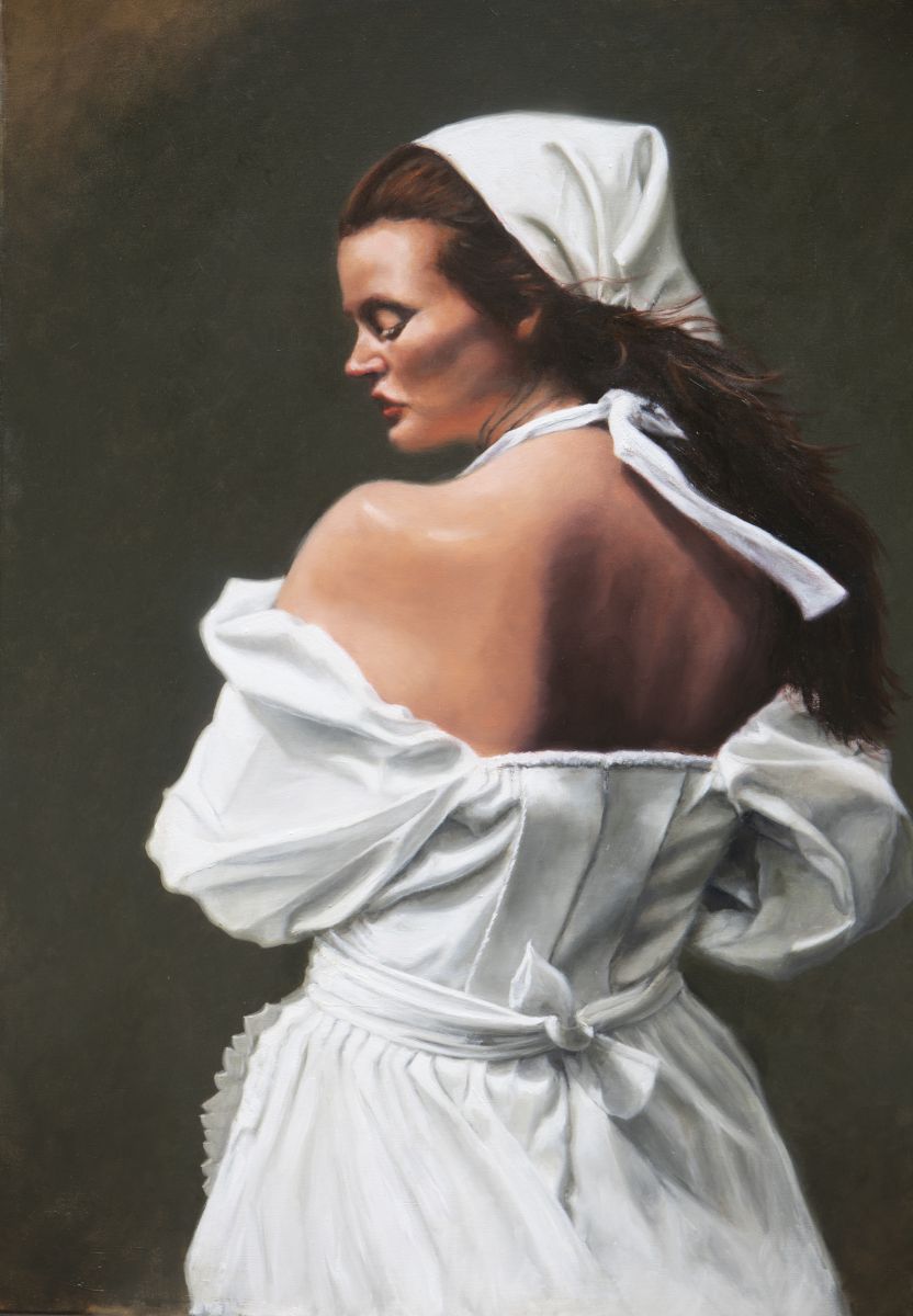 "Vrouw in wit" - olie op canvas - 100 x 70 cm